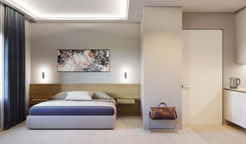 В STUD: французька або окремі ліжка, софа, кондиціонер, супутникове ТБ, Wi Fi інтернет, сейф, міні бар, чайник, санвузол з душовою кабіною, фен, балкони не у всіх номерах. Максимальне розміщення: 3 чол. Площа: 22 м2.
