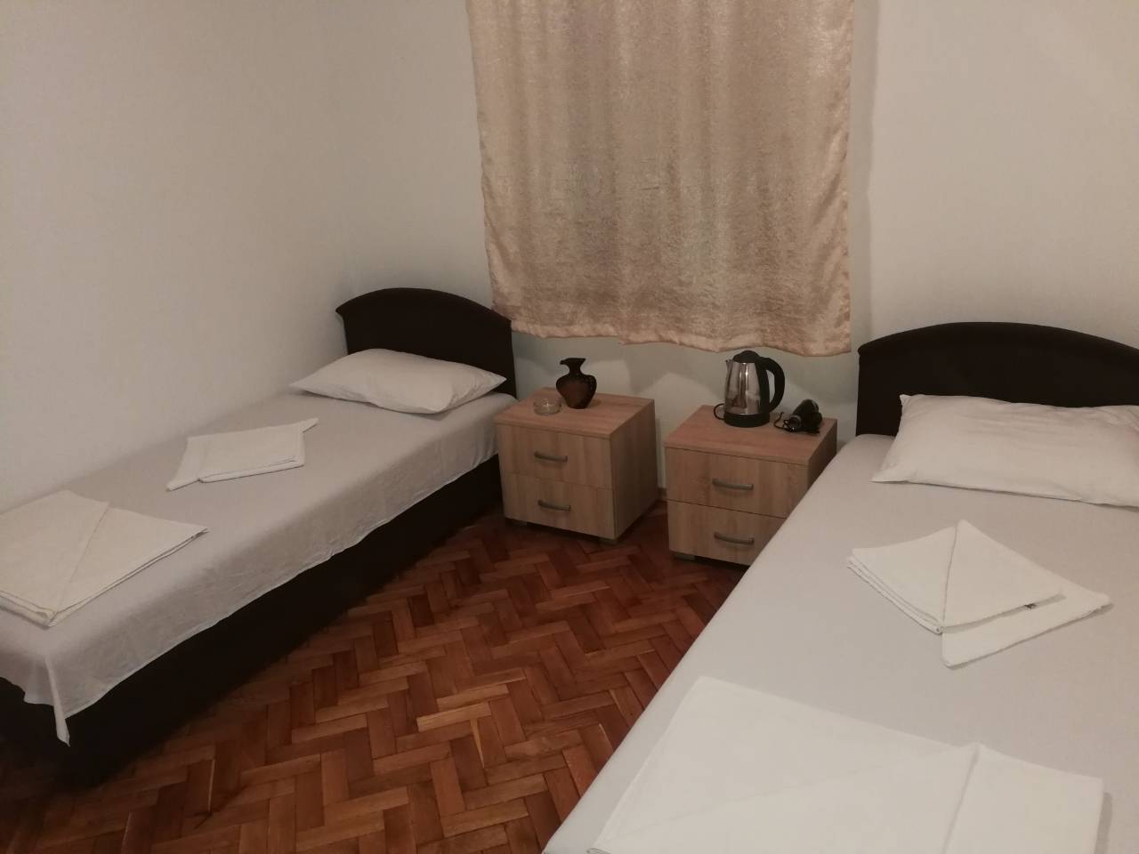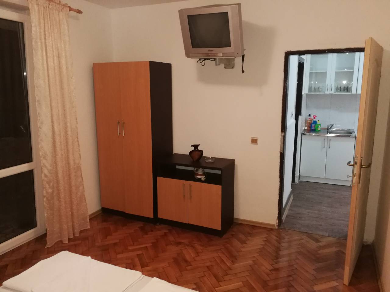 B APP 04: всього 1 номер, 2 спальні і кухня, в одній спальні-французьке ліжко, в другій спальні два окремих ліжка, 2 кондиціонери, телевізор, кухня, чайник, їдальня зона, холодильник, душова кімната, балкон.