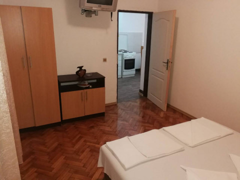 B STUD 02: всього 1 номер, знаходиться на другому поверсі, в номері-французьке ліжко, кондиціонер, телевізор, міні-кухня, холодильник, душова кімната, чайник, вихід на терасу.