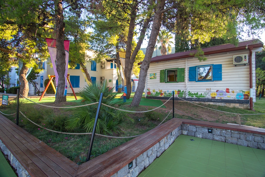 Відкритий басейн, два конференц-зали на 140 місць. Основний ресторан (шведський стіл), аперитив-бар, кафе-кондитерська, бар «все включено», парковка, дитячий майданчик, тенісні корти, футбольне поле.