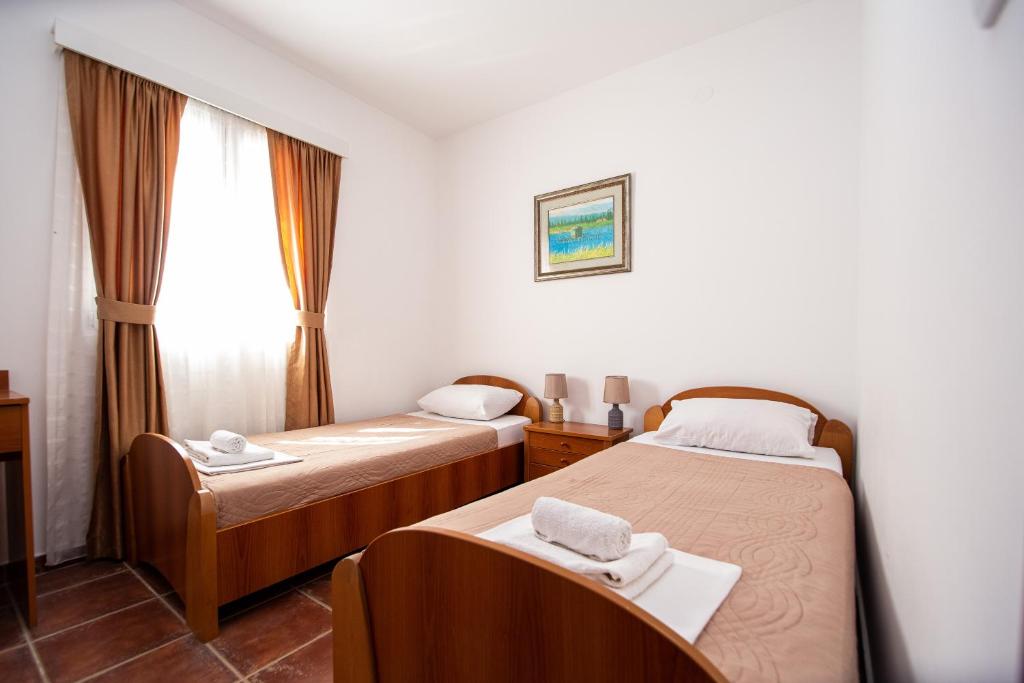 У тихому, спокійному районі Будви, в 1 км від Старого міста, в 750 м від міського пляжу, в 25 км від аеропорту Тіват і 65 км від аеропорту Подгориці.
