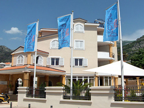 Готель знаходиться на другій лінії, в 400 м від готельного комплексу Словенска Плажа. У 23 км від аеропорту Тіват і в 60 км від аеропорту Подгоріца. Працює з 2005 року.