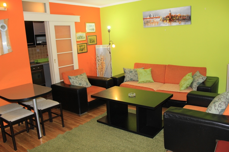 APP MLADAN 02 + 1: Двокімнатний номер з вітальнею, спальнею і повністю укомплектованою кухнею, кондиціонер в кожній кімнаті, 2 балкони з видом на подвір'я (вихід із спальні і з вітальні), 2 батареї на обігрів, інтернет.