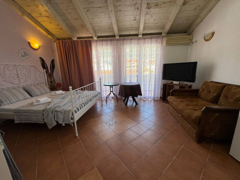 В STUD 02+1: французьке ліжко та розкладний диван, кухня, кондиціонер, телевізор, інтернет, балкон. Максимально допустимий розміщення - 3 людини.