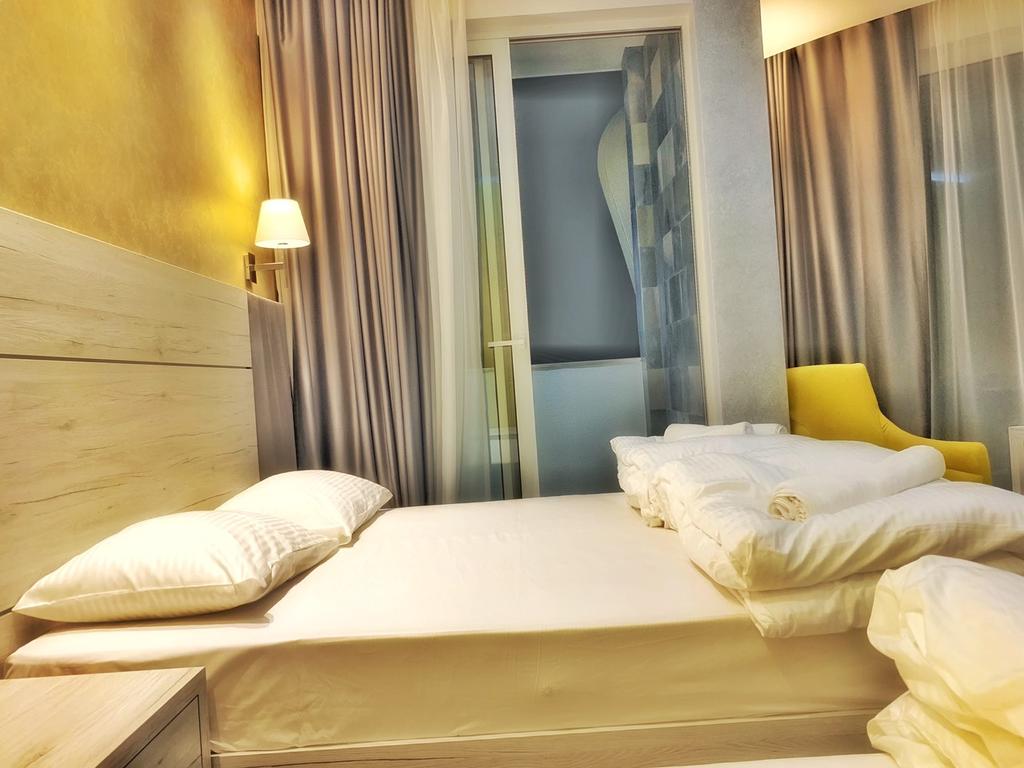 В TRPLE SUITE: сімейний номер з великим французьким ліжком, двома роздільними одномісними ліжками і диваном, кондиціонер, супутникове ТБ, Wi Fi інтернет, міні бар, сейф, санвузол з душовою кабіною, фен, балкон з видом на місто. Площа: 30 м2. Макс розміщення: 3+2 чол.