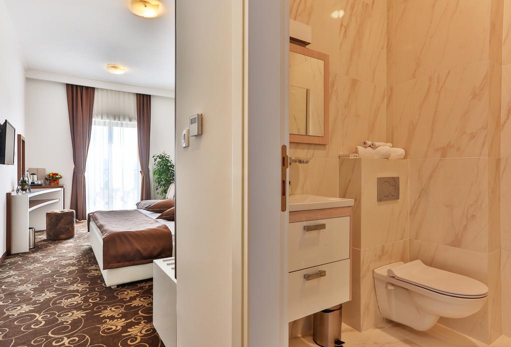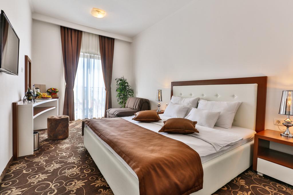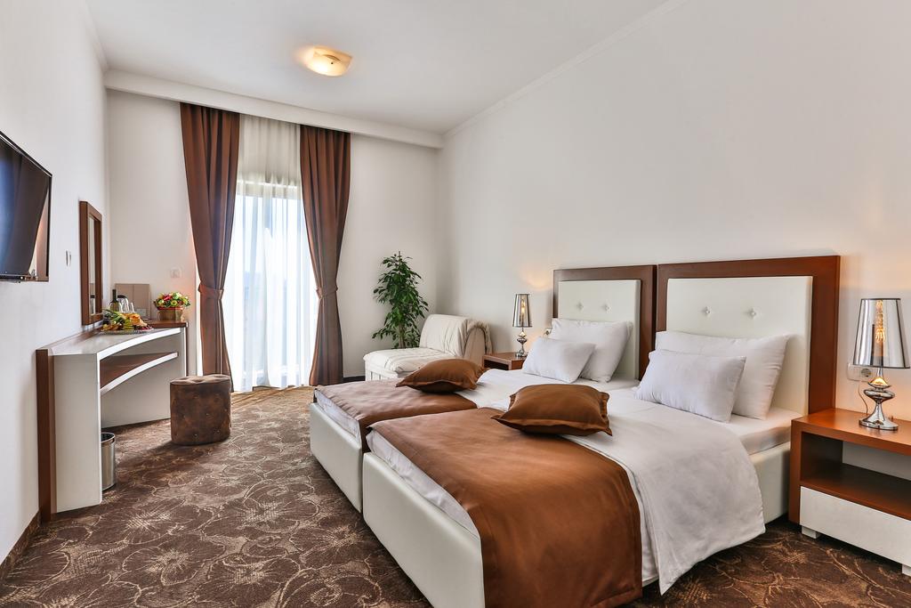 В Superior DBL / Twin: французьке або окремі ліжка, софа, кондиціонер, супутникове ТБ, Wi Fi інтернет, сейф, міні бар, санвузол з душовою кабіною, фен, тапочки, балкон з видом на місто. Максимальне розміщення: 3взр. Площа 24 м2.