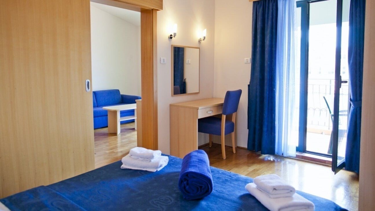 В SUITE: Двокімнатний номер, в спальні - французьке ліжко, у вітальні - розкладний диван, кондиціонер, міні-бар, кабельне телебачення, інтернет, ванна кімната, душова кабіна, фен, парфумерія, балкон. Максимальна розміщення - 4 людини.