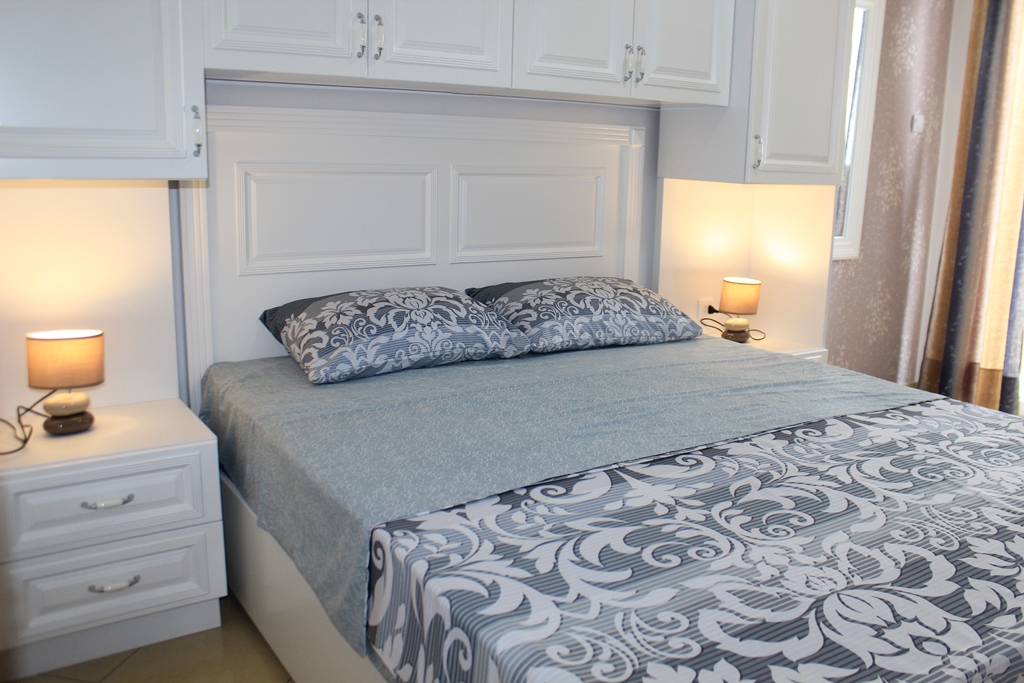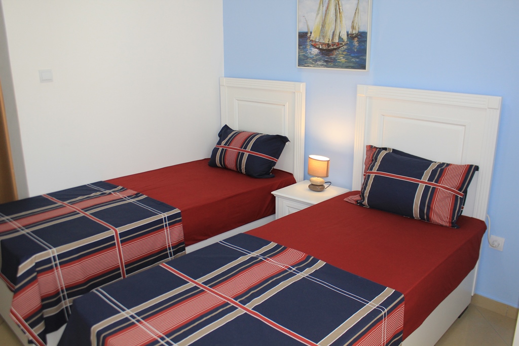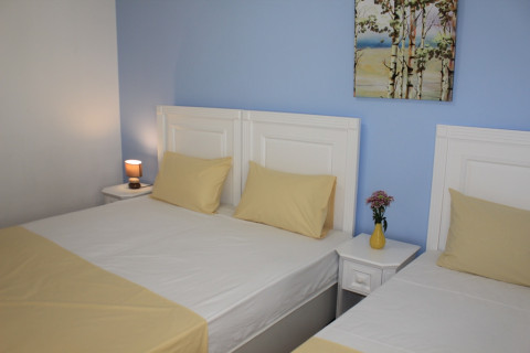 В APP: Спальня з трьома ліжками, вітальня з диваном і телевізором, кондиціонер, холодильник, кухня з електричною плитою і всім необхідним посудом, сейф, фен, балкон, сушарка, душова кімната, кабельне телебачення.