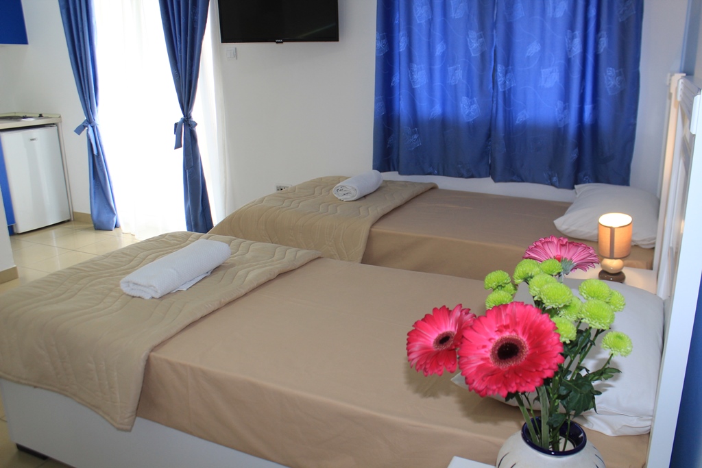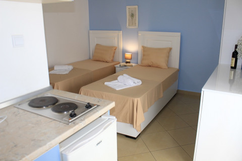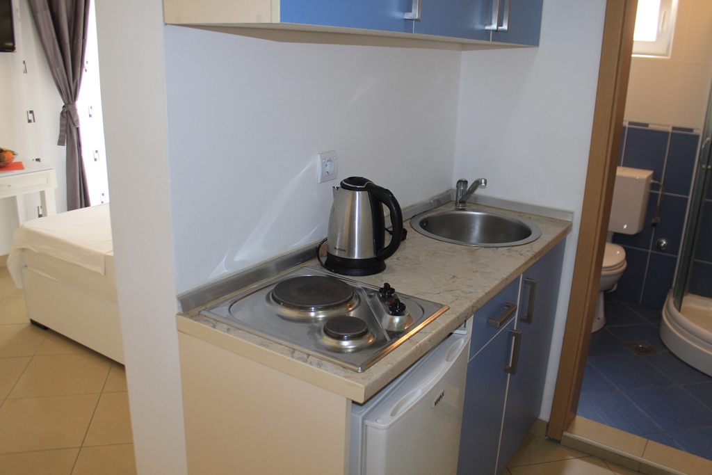 В STUD 02: двоспальне або роздільні ліжка, кондиціонер, холодильник, міні-кухня, електрочайник, сейф, фен, балкон, душова кімната, кабельне телебачення.