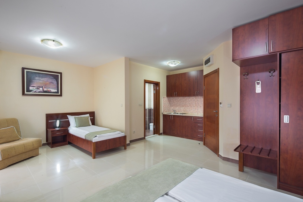 В отеле: 27 номеров, включая одно- , двух- и трехместные номера и двух- и трехместные студио. В большинстве номеров балкон. Во всех номерах ванная комната с душем ,фен , кондиционер ,холодильник , сейф , кабельное ТВ с российскими каналами , в каждом студио мини-кухня с набором посуды. Ежедневная уборка номеров и смена полотенец , смена постельного белья дважды в неделю.