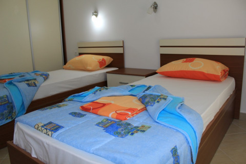 В АРР: 2 окремі спальні, французьке та окремі ліжка, кухня, кондиціонер, холодильник, чайник, TV з російським каналом, ванна кімната з душовою кабінкою, балкон.