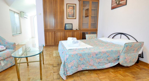 В STUD 02 LUX: номер знаходиться в новій частині будівлі, оформлений сучасно, французьке ліжко, міні кухня, кондиціонер, супутникове ТБ, Wi Fi інтернет, санвузол з душовою кабіною, просторий балкон. Макс розміщення: 2 дор.