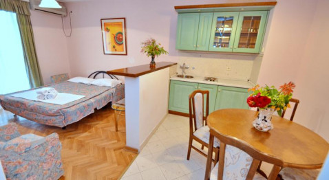 Для розміщення пропонуються двомісні, тримісні і чотиримісні номери, студіо та апартаменти.