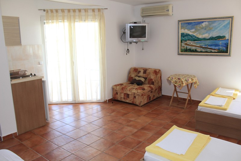 B STUD: однокімнатний номер з французьким або роздільними ліжками, додаткове ліжко за запитом, кухня, телевізор, кондиціонер, душова кабіна, балкон або тераса перед входом. Максимальне розміщення 4 людини. Всі номери різні за площею (10-20 м).