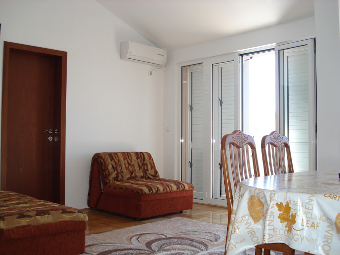 В APP 04 /MORSKI PLES, 1 BR: двокімнатний номер, у вітальні розкладний диван, повністю обладнана кухня, їдальня зона, в спальнe французьке ліжко, кондиціонер, супутникове ТБ, Wi Fi інтернет, санвузол з душовою кабіною, тераса з видом на сад. Площа: 37 м2. Макс розміщення: 3 дор.