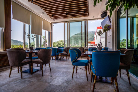 Готель відкритий в лютому 2011 року, знаходиться на Ядранський магістралі, в безпосередній близькості від пляжу Яз, на відстані 5 км від центру Будви (Старого міста), в 18 км від Тівата і в 14 км від Котора.