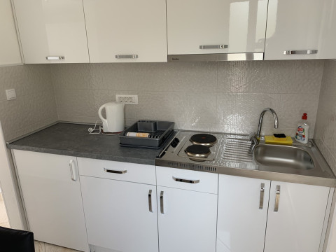 однокімнатний номер, двоспальне ліжко, кухня, ванна кімната, холодильник, чайник, кондиціонер, тераса, WiFi, кабельне ТБ.