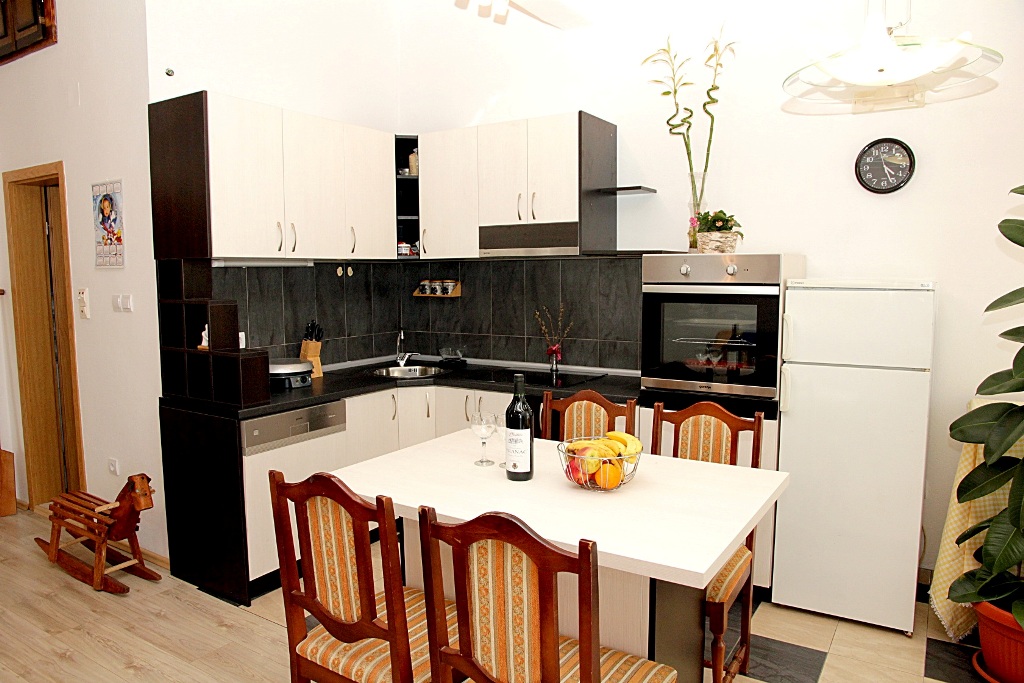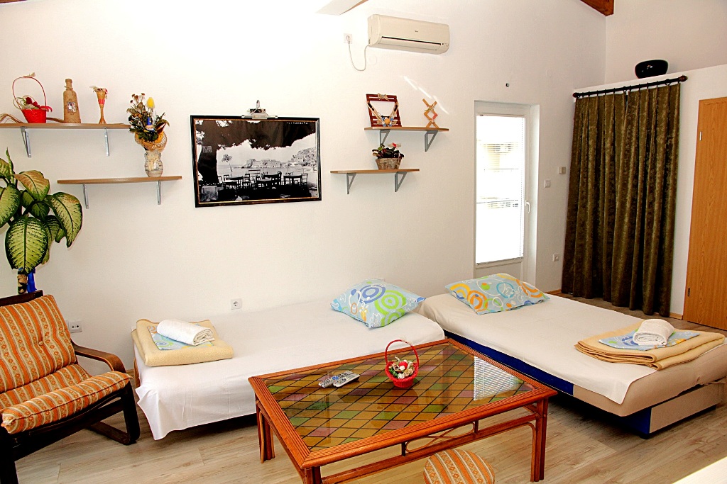 В АРР 04 / SV: Спальня з французьким ліжком, вітальня з розкладним диваном, повністю обладнана кухня, холодильник, кабельне телебачення, Wi Fi інтернет, кондиціонер, санвузол з душовою кабіною, пральна машина, балкон з видом на море. Максимальне розміщення - 4 людини.