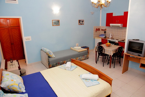 На віллі два двомісні номери, одна чотиримісна студія і один апартамент. Номери з видом на море або у двір. Вілла знаходиться в захищеному від дороги місці.