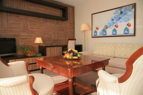 В APP: Спальня, вітальня з розкладним диваном, кухонний куточок, холодильник, плита, кондиціонер, телефон, кабельноем телебачення, ванна кімната, фен, міні-бар.