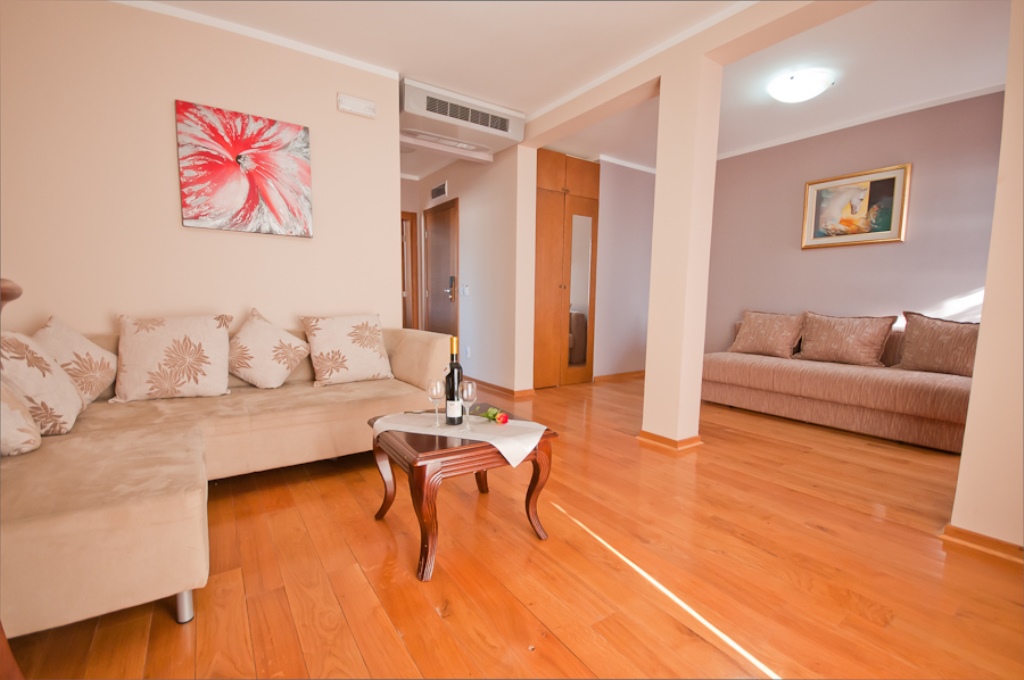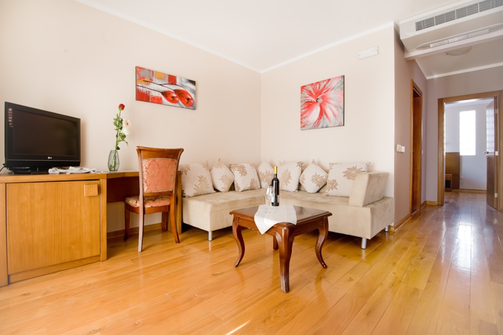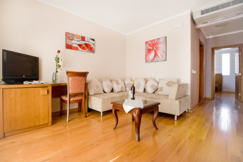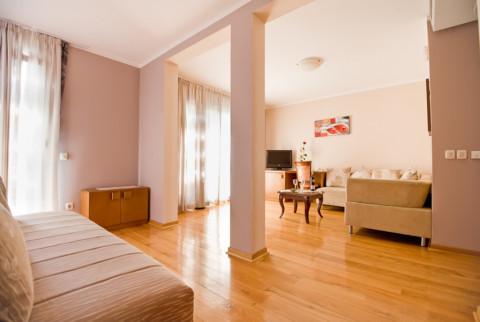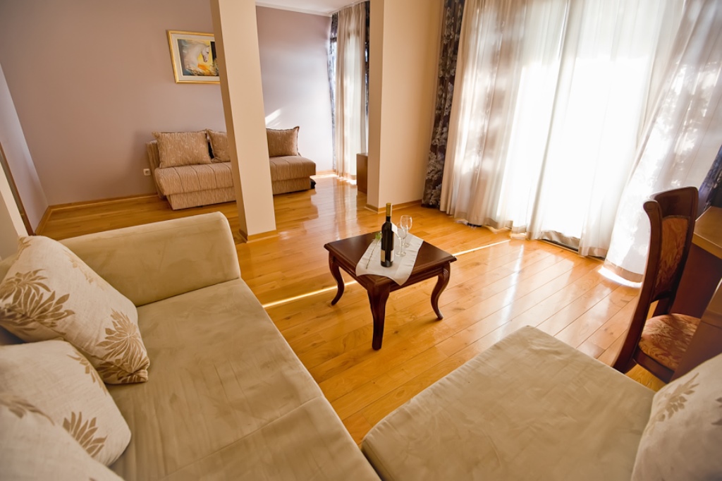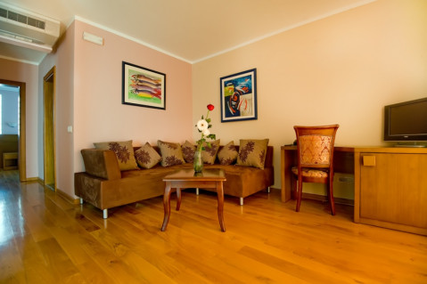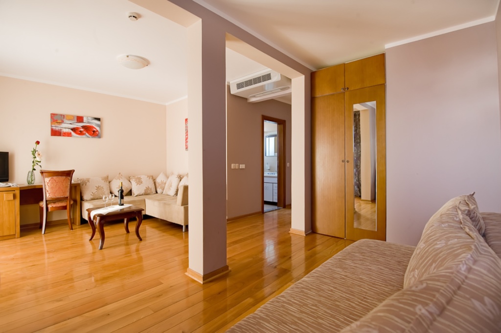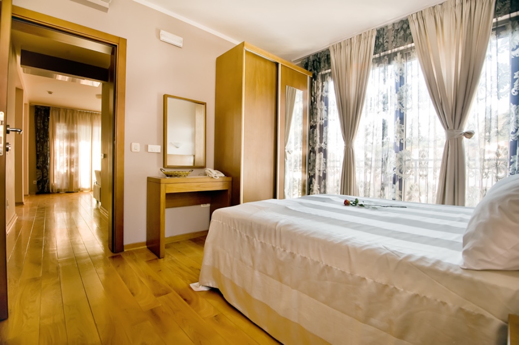 В SUITE: Спальня з французьким ліжком та вітальня з розкладним диваном, кондиціонер, міні-бар (за додаткову плату), фен, тераса, ванна або душ, кабельне телебачення, бездротовий інтернет.