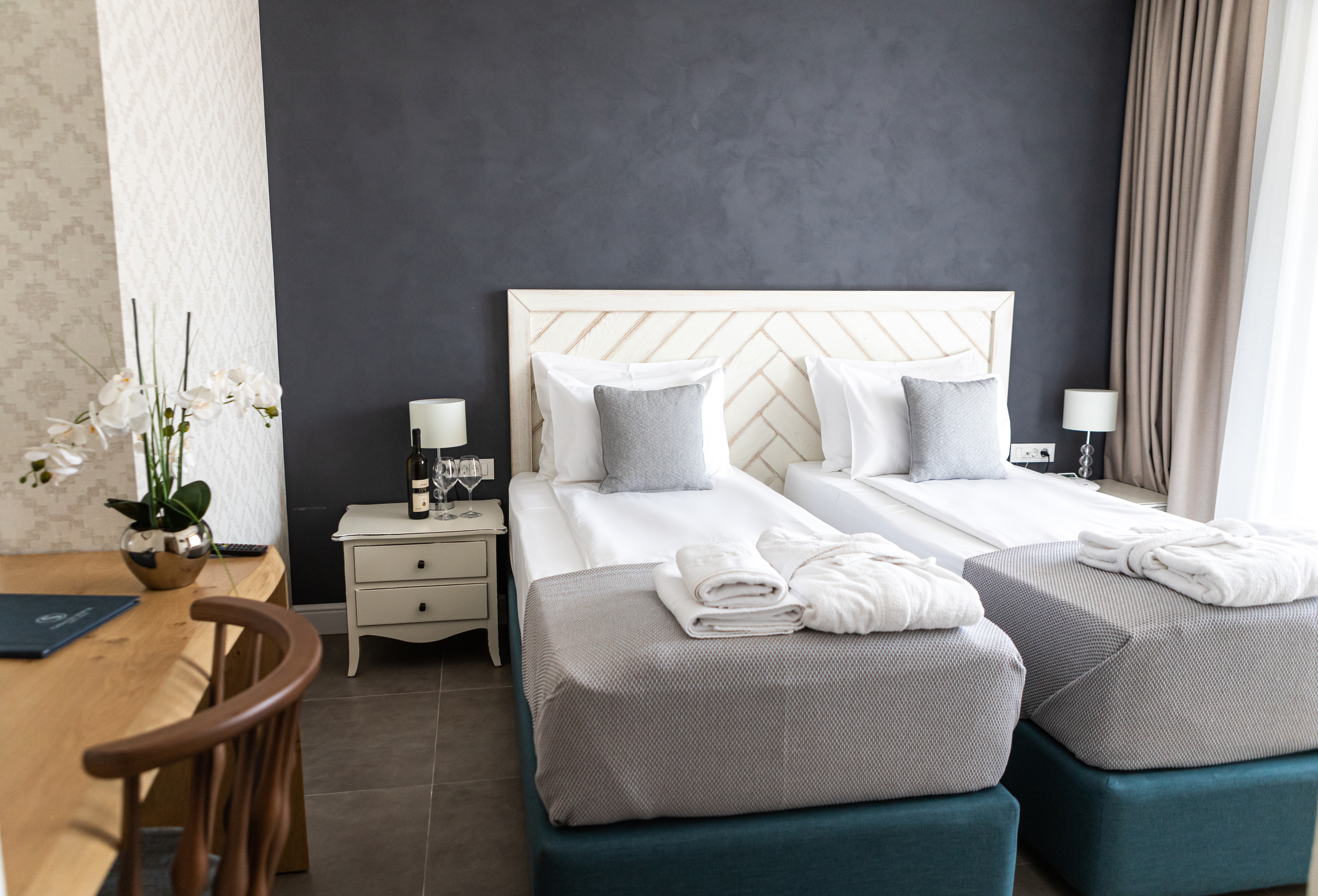 B DBL STD: французьке ліжко або окремі ліжка, кондиціонер, супутникове ТБ, Wi-Fi інтернет, сейф, міні бар, чайник, санвузол з душовою кабіною, фен, рушник для пляжу, балкон. Максимальне розміщення: 2 особи. Площа: 24 м2.