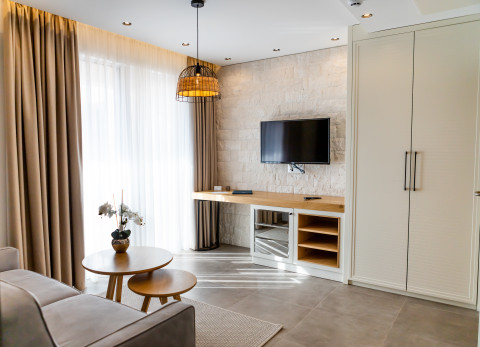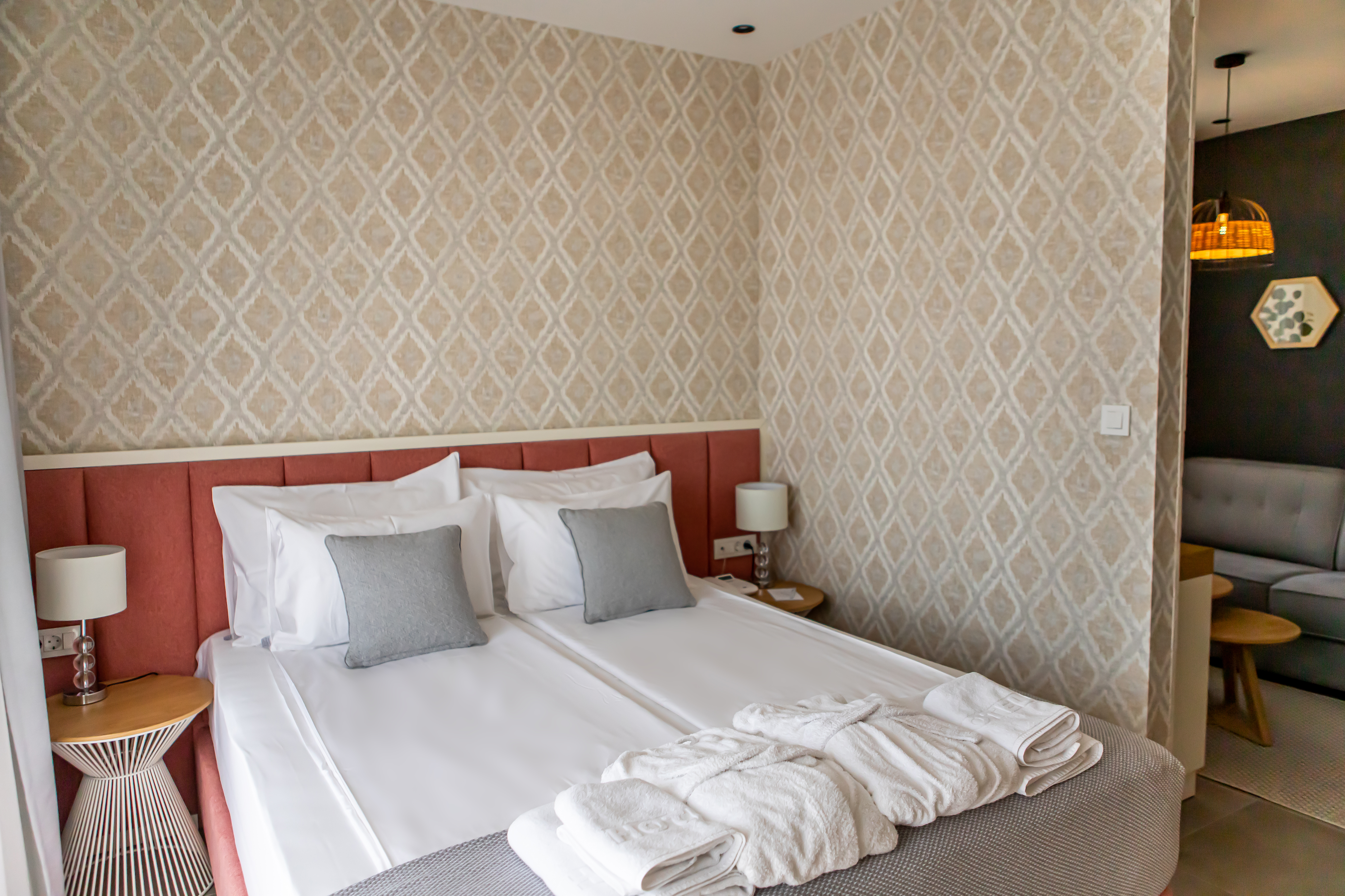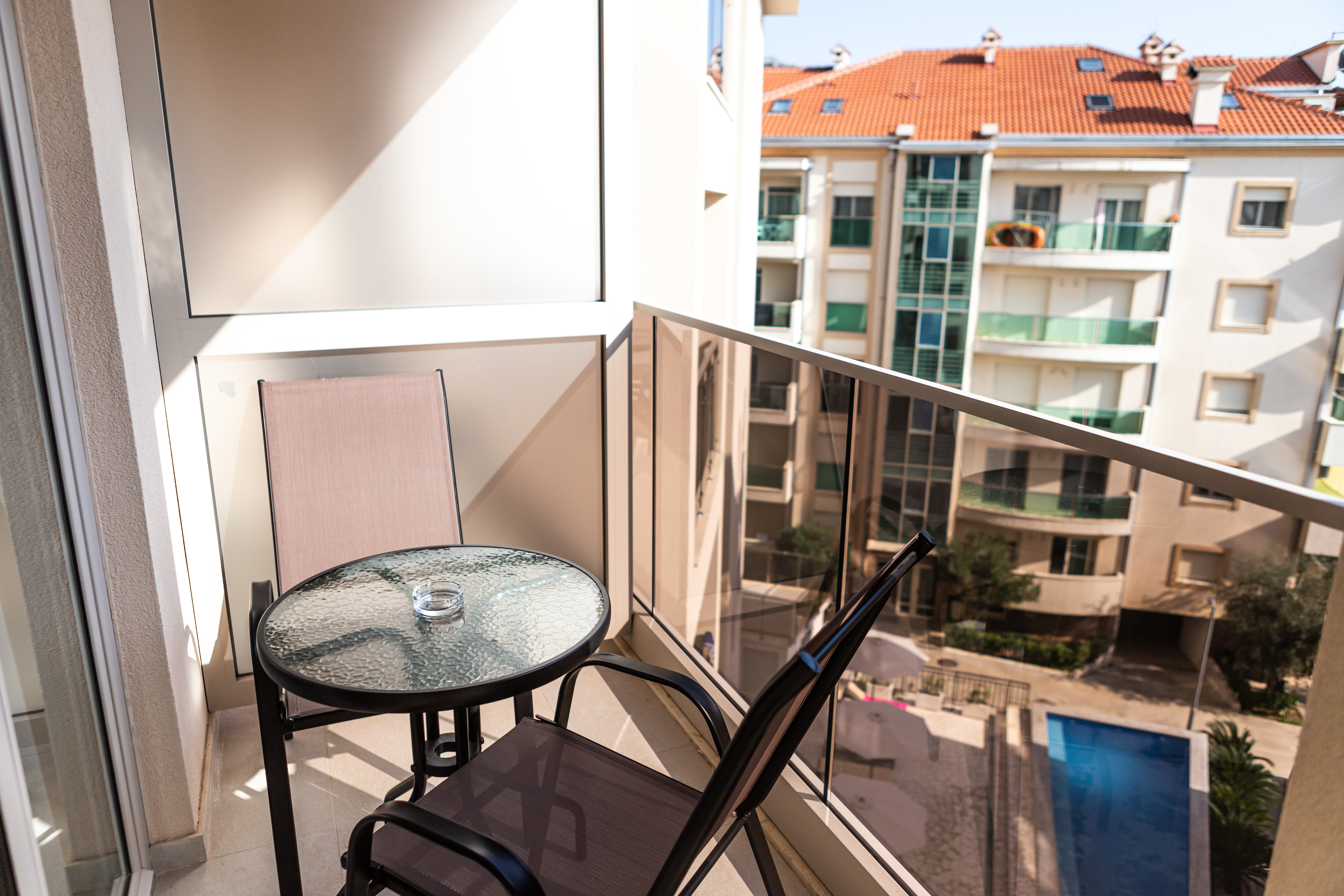 B APP 1 BR: двокімнатний номер, у вітальні диван, що розкладається, в спальні французьке ліжко або роздільні ліжка, кондиціонер, супутникове ТБ, Wi Fi інтернет, сейф, міні бар, чайник, санвузол з душовою кабіною, фен, балкон. Максимальне розміщення: 2 дор. + 2 дит. Площа: 32 м2.
