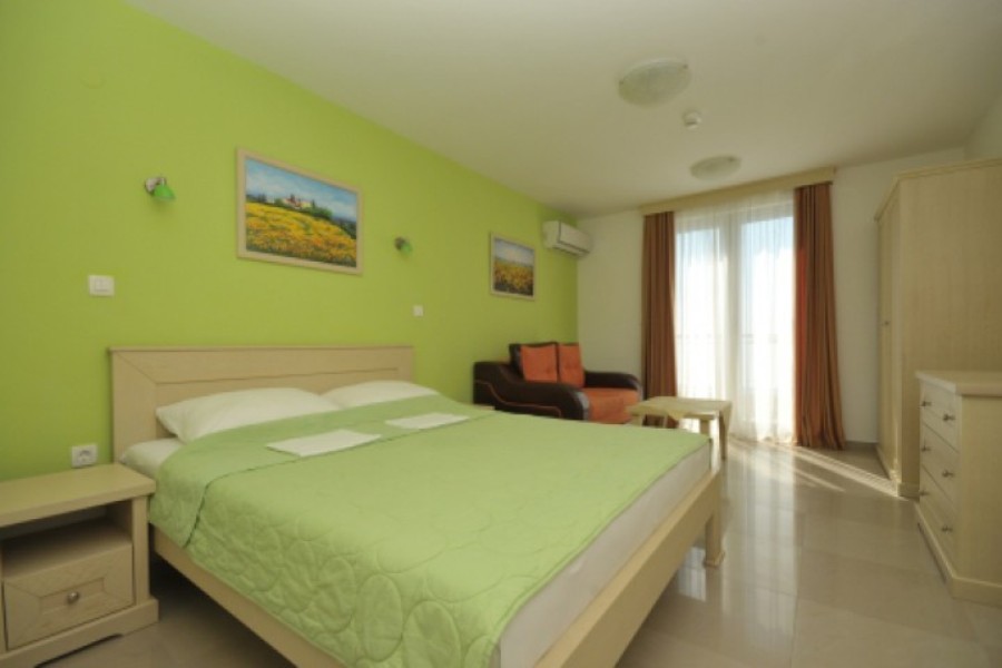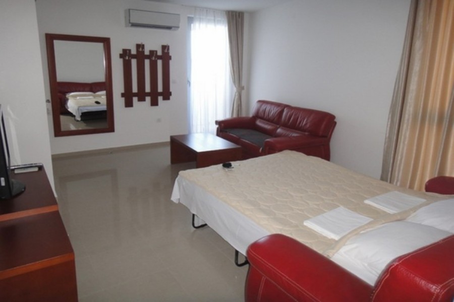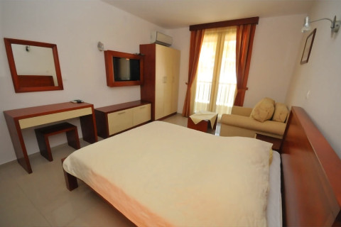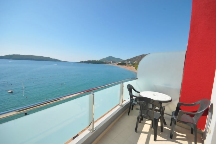 DBL+ex.bed superior sv (№3,4,5,9,10,11): 24 м2, терраса 3-9 м2 с прямым видом на море, французская кровать (160×200cm) +раскладной диван (120x200cm), ванная комната с душем. Максимальное размещение — 3 человека.