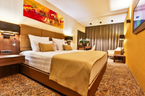 В Superior DBL SV: французьке ліжко та софа, зона відпочинку, кондиціонер, супутникове ТБ, Wi Fi інтернет, міні бар, сейф, телефон, апарат для приготування чаю та кави, чайник, санвузол з душовою кабіною, фен, капці, балкон з видом на море. Максимальне розміщення: 2 особи. Площа: 29 м2.