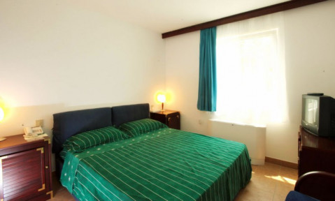 FAMILY, 2-bedroom № 111: Розміщення 2+1 pax. Передпокій та дві кімнати. Більшою кімнаті ліжко 2000 х 1700, телевізор, телефон і міні - бар і вихід на терасу. У маленькій кімнаті ліжко 2000 х 900, телевізор, телефон, міні-бар .. У ванній - душова кабіна. (45 м2).