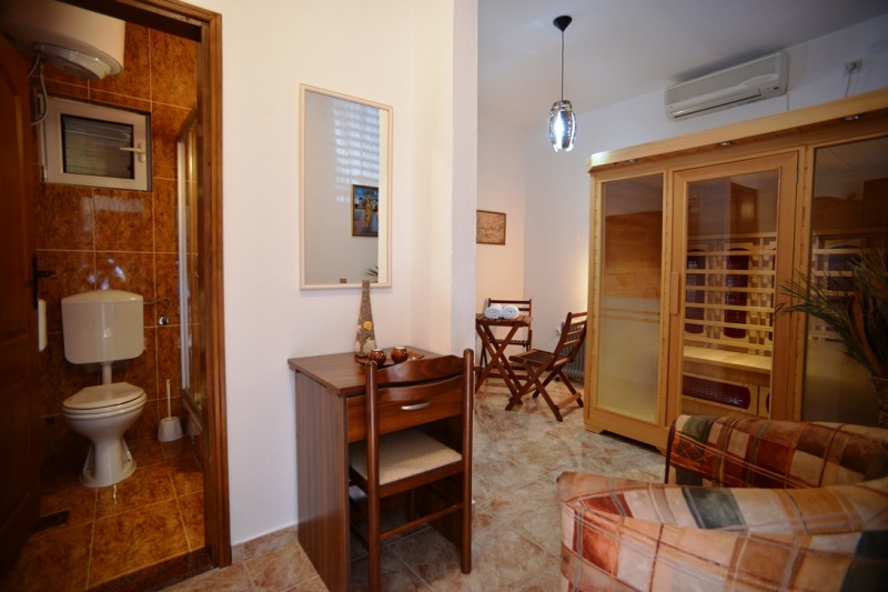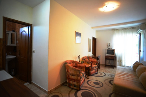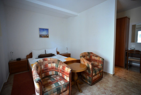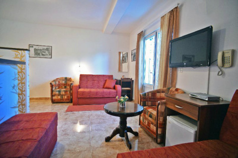 В DBL SUPERIOR: французька або окремих ліжка, кондиціонер, супутникове ТБ, Wi Fi інтернет, міні бар, радіо, телефон, санвузол з душовою кабіною, фен, тераса з видом на море.