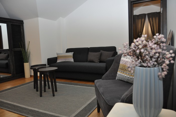 У SUPERIOR SUITE 1 BR: вітальня з диваном, в спальні французьке ліжко, кондиціонер, кабельне ТБ, Wi Fi інтернет, міні-бар, сейф, санвузол з душовою кабіною, фен, балкон. Площа: 60м2. Максимальне розміщення: 4 чол.