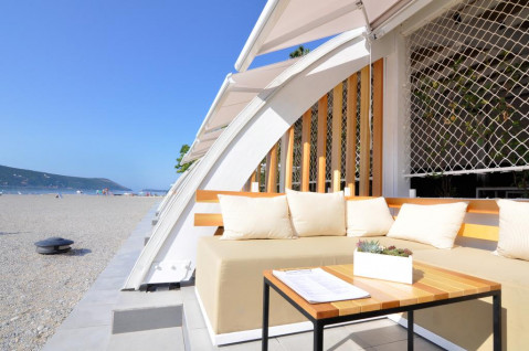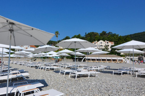 У 10 м від готелю. Готель має в своєму розпорядженні двома власними пляжами. Парасольки і шезлонги за допплату.