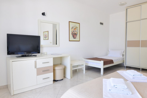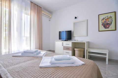 У STD: Площа 20 м2. Французька ліжко (+ односпальне ліжко в тримісному номері), кондиціонер, кабельне телебачення (плазма),