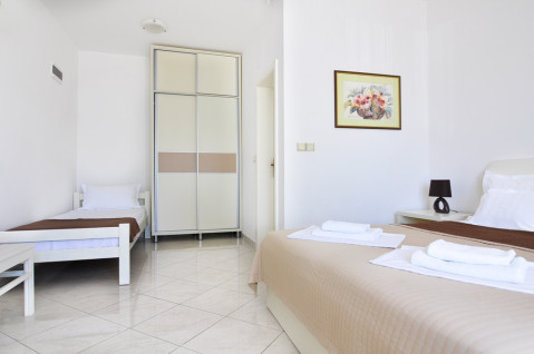 У 30 м власний пляж (бетонна платформа), обладнання лежаками и парасолька (безкоштовно). На набережній предлагают водні види