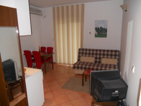 У STUD 02: Французька ліжко, кухня, холодильник, чайник, душова кабіна, туалет, кондиціонер, інтернет, фен, праска, супутникове ТБ, на балконі - стіл з 2 стульяміі, два шезлонга і парасольку від сонця (21 м2).