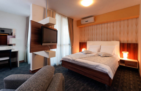 В APP SUPERIOR 1-4 поверхи 4 *: Однокімнатний номер з виділеною спальною зоною, французьке ліжко, розкладний диван, балкон, кондиціонер, міні-бар, сейф, доступ в інтернет, кабельне телебачення-в кожній кімнаті плазмовий телевізор, у ванній душова кабіна, туалет. Максимальне розміщення 4 людини.