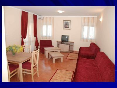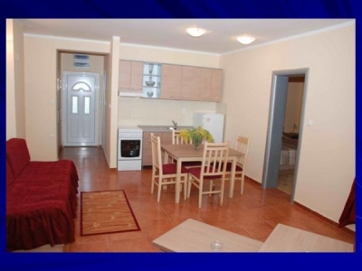 В апартаменті 04: Двокімнатний номер, в спальні французьке ліжко, в залі: два ліжка, розкладне крісло, кухня, чайник, холодильник, обідній стіл, необхідний посуд, кондиціонер, кабельне телебачення, Інтернет (безкоштовно), у ванній душова кабіна, фен, балкон з видом на море зі столом і стільцями. Максимальне розміщення: 4 + 1 дитина.