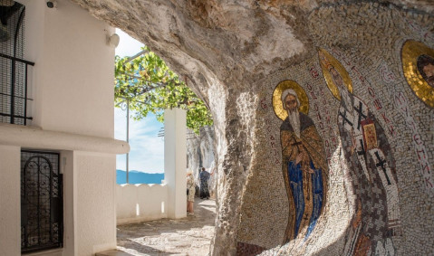 Верхній монастир відділений від Нижнього дорогою довжиною близько 5 кілометрів, що проходить через ліс. Однак паломники, що йдуть пішки, зазвичай користуються коротшою пішохідною дорогою, яку можна подолати за 20-25 хвилин. Верхня частина вбудована в скельну нішу на висоті 900 м над рівнем моря, вона дворівнева, і там знаходяться найважливіші пам'ятки монастиря. Ця частина комплексу складається з двох невеликих церков: Хрестовоздвиженської (1665 рік) і Введенській (XVII століття).