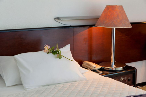 В KORPUS B: Ліжко, телефон, кондиціонер, ванна кімната, балкон з видом на море.