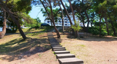 Берег - поєднання скелястих і бетонних ділянок. Химерні скелі і сосновий бір надають місцю особливий колорит.