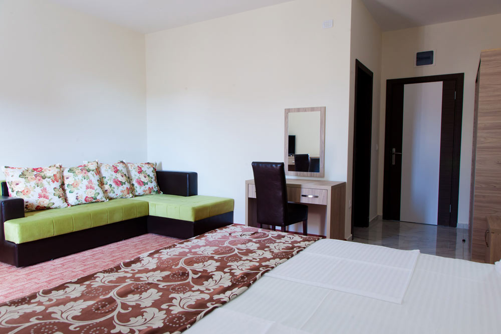 В DBL BIG: французьке ліжко та розкладний диван ндля двох осіб, кондиціонер, супутникове ТБ, Wi Fi інтернет, міні бар, санвузол з душовою кабіною, фен, балкон. Площа: 30 м2. Максимальне розміщення 4 чол.