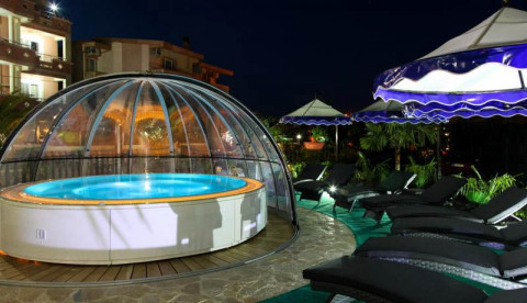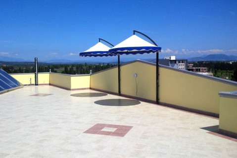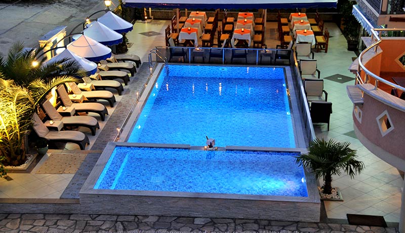 Сучасний п'ятиповерховий будинок, басейн 10 х 5м, джакузі, ресторан і бар через дорогу від готелю, дах готелю обладнана шезлонгами і парасольками.
