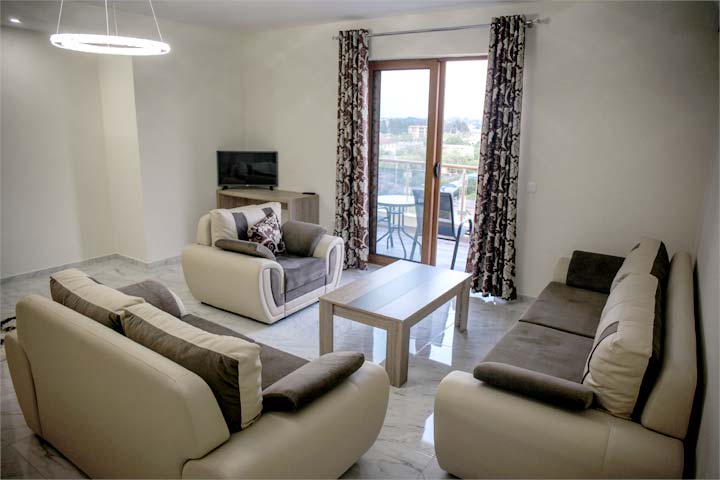 В АРР 06: вітальня з диваном, повністю обладнана кухня (плита, холодильник, мийка, чайник, мікрохвильова піч), дві спальні з французьким ліжком, кондиціонер, супутникове ТБ, Wi Fi інтернет, два санвузли з душовою кабіною, фен, балкон. Площа: 125 м2. Максимальне розміщення 6 чол.