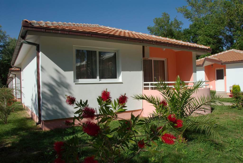 В BUNGAL: дерев'яні будиночки, французьке та односпальне ліжка, кухонний блок (є або відсутній), кабельне телебачення, кондиціонер, тераса, душ.Максімальное розміщення - 3 людини.