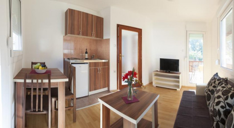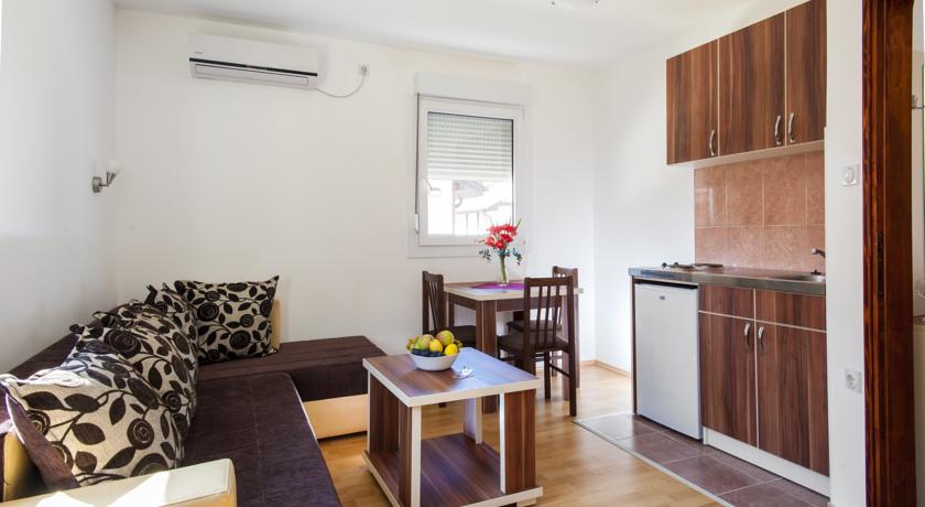В APP: двокімнатні номери знаходяться в головному корпусі, спальня з французьким ліжком та вітальня з диваном і кухнею, холодильник, обідній стіл, кондиціонер, кабельне телебачення, балкон, душ. Максимальне розміщення - 4 чоловік.