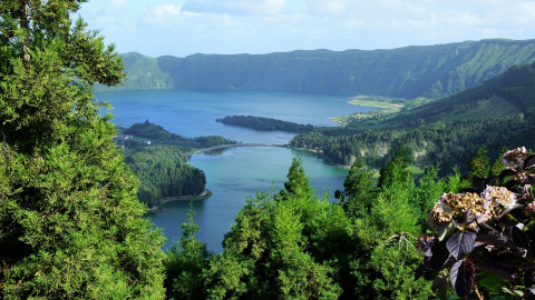 У кожного з дев'яти Азорських островів - свій "коник", своя точка туристичного тяжіння. Східна група - Санта-мария (перший, відкритий португальцями і найтепліший острів архіпелагу) і Сан Мигель - прекрасні місця для піших прогулянок, дайвінгу, лікування в живильних водах гейзерів. Гордість жителів Сан-Мигеля - Terra Nostra, величезний парк, заснований Томасом Хиклингом, торговцем з Бостона. У ХIХ ст. він висадив на 12 га дерева і незлічену кількість кольорів, серед яких почесне місце займають гортензії - символ Азорських островів. У північній частині острова знаходиться Огенное озеро, де готують "кузиду-даш-фурнаш", знамените азорське блюдо - м'ясо, тушковане в гарячих ключах.
