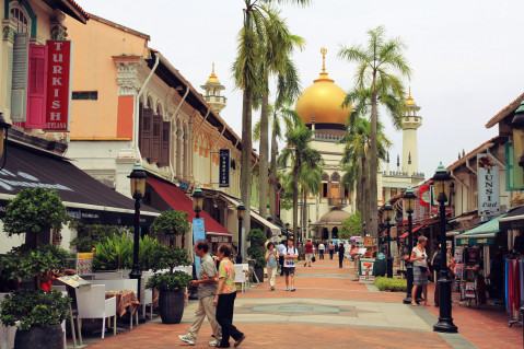 До XIX в. тут сформувалася щільна арабська громада, що утворилася з торговців, які прибули в Сінгапур з країн Близького Сходу. Через що квартал і прозвали мусульманським або арабським. Сьогодні околиці Arab Street часто називають «текстильним округом»: від представленого в тутешніх магазинах різноманітності тканин, фурнітури, строкатих арабських килимів з оригінальними візерунками розбігаються очі. Один з найстаріших магазинів - Basharahil House of Batik - пропонує покупцям індонезійський батік екстракласу. Або ось Jamal Kazura Aromatics - парфумерна лавка Джамаля Казуров з арабськими духами. Якщо є охота (бажання) можна скласти свій власний аромат, якщо в асортименті не знайшлося нічого підхожого. А можна заблукати на Haji Lane, вулиця славиться численними шоу-румом сінгапурських молодих дизайнерів. По праву її вважають центром місцевого молодіжного дизайну. І в кращих традиціях Сінгапуру в етнічних кварталах подається найкраща національна їжа. Квартал рясніє численними ресторанами традиційної арабської та турецької кухні. Ароматний murtabak - сінгапурський аналог італійської піци, rendаng - м'ясо зі спеціями, sayor lodeh - овочева суміш, приготована в кокосовому соусі, ikan bakar - риба, посмажені на відкритому вогні. Заходьте в ресторани, пробуйте і насолоджуйтеся. Основна визначна пам'ятка цього району - мечеть Султана, яка була побудована в 1928 р, - притягує до себе блискучим золотим куполом і знаменита величезним молитовним залом. Одне з найбільш видатних архітектурних будівель Арабського кварталу та охороняється пам'ятник країни.