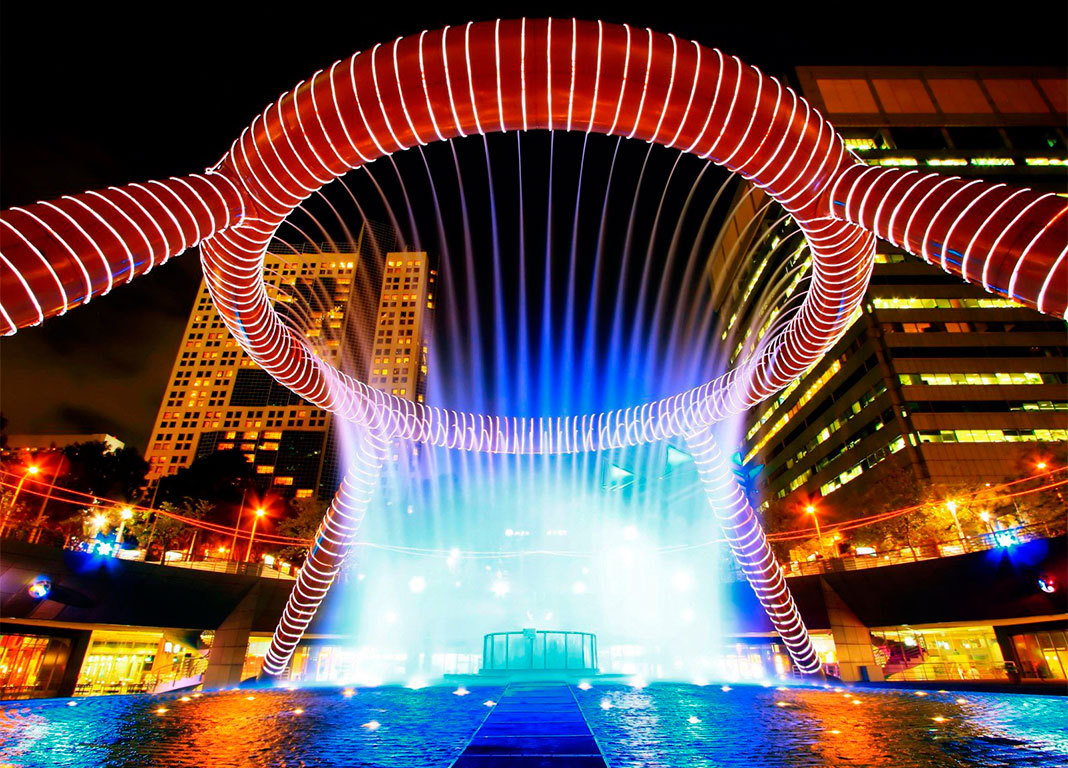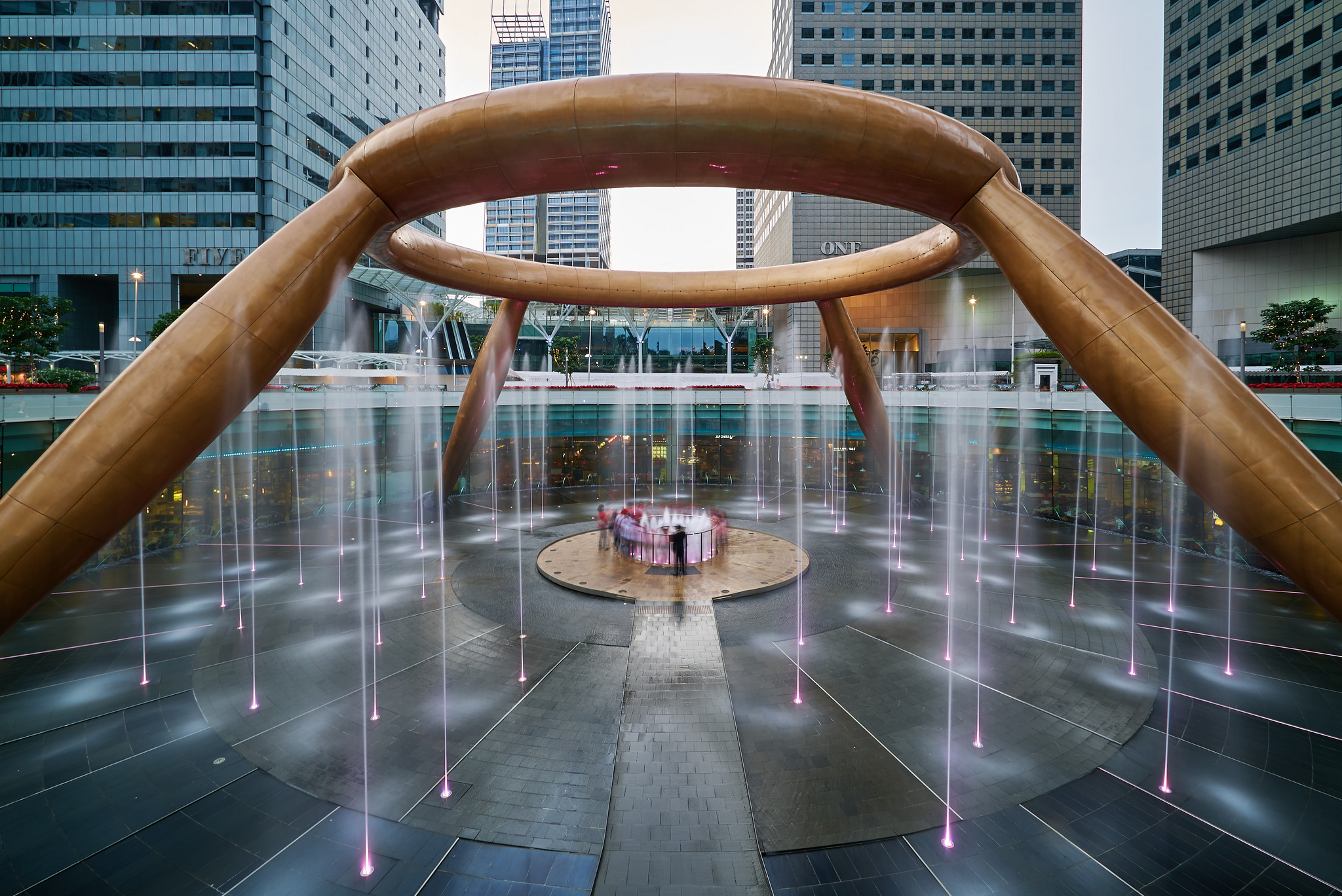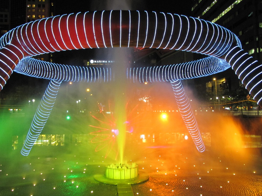 Фонтан багатства в Сінгапурі Це найяскравіша споруда привертає увагу, і пропустити його неможливо. Природно, тут теж не обійшлося без феншую. Навіть більше — фонтан повністю спроєктований на основі вчення і символізує багатство і процвітання. Fountain of Wealth у 1998 році був внесений в книгу рекордів як найбільший фонтан у світі, правда, я не знаю, актуальна зараз ця інформація чи ні. Займає фонтан площа близько 1700 кв. м. У вечірній час доповнюється підсвічуванням. Він розташований в одному з найбільших торгових центрів Сінгапуру Suntec City. Торговий центр і ще 4 офісних будівлі утворюють як би тильну сторону лівої руки, а сам фонтан знаходиться в центрі «долоні», і, відповідно до основ феншуй, саме з лівої сторони йде багатство. Сама форма фонтану (його кільце у верхній частині) заснована на індуїстської мандалу, що означає всесвіт. Опори фонтану виконані з бронзи, у них теж є своє символічне значення. Самі опори — це 4 основні релігії Сінгапуру, а бронза і вода — символи достатку і гармонії. Сінгапурці навіть подбали про недосвідчених у вченні феншуй й біля входу до фонтану розмістили табличку з правилами його використання. Ну мило ж, чи не так? Обслуговування номерів великий фонтан відключається, і відвідувачів запрошують прогулятися по міні-фонтану в самому його центрі. Найкраще це робити ввечері, коли включається підсвічування фонтану. Кажуть, що потрібно занурити руку в фонтан і пройти три рази навколо нього «на удачу». Нібито це допомагає стати успішним і багатим. Спорудження збирає навколо себе юрби туристів. Може, кожен хоче стати багатим? А чому б і... Так? Таким простим способом!