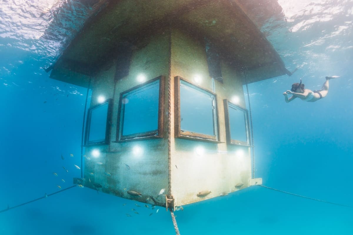 Готель складається з невеликої платформи з пристанню, на якій розмістився мініатюрний червоний будиночок. Зовні він дуже нагадує класичний шведський котедж «Стуга», який найчастіше фарбують саме в червоний колір. У підводний номер постояльці можуть спуститися по спеціальній драбині, він розрахований на двох гостей і оформлений в біло-червоних тонах. Головною привабливою особливістю номера залишаються прямокутні вікна, через які можна спостерігати за підводними мешканцями.